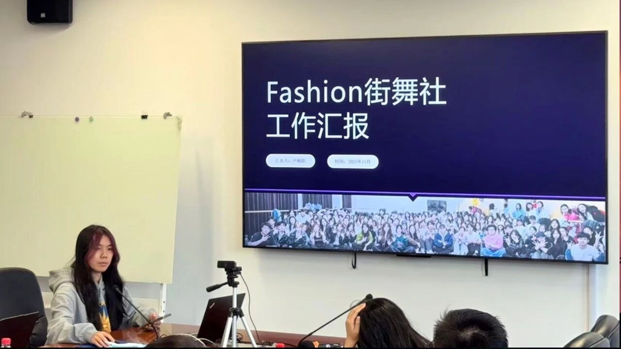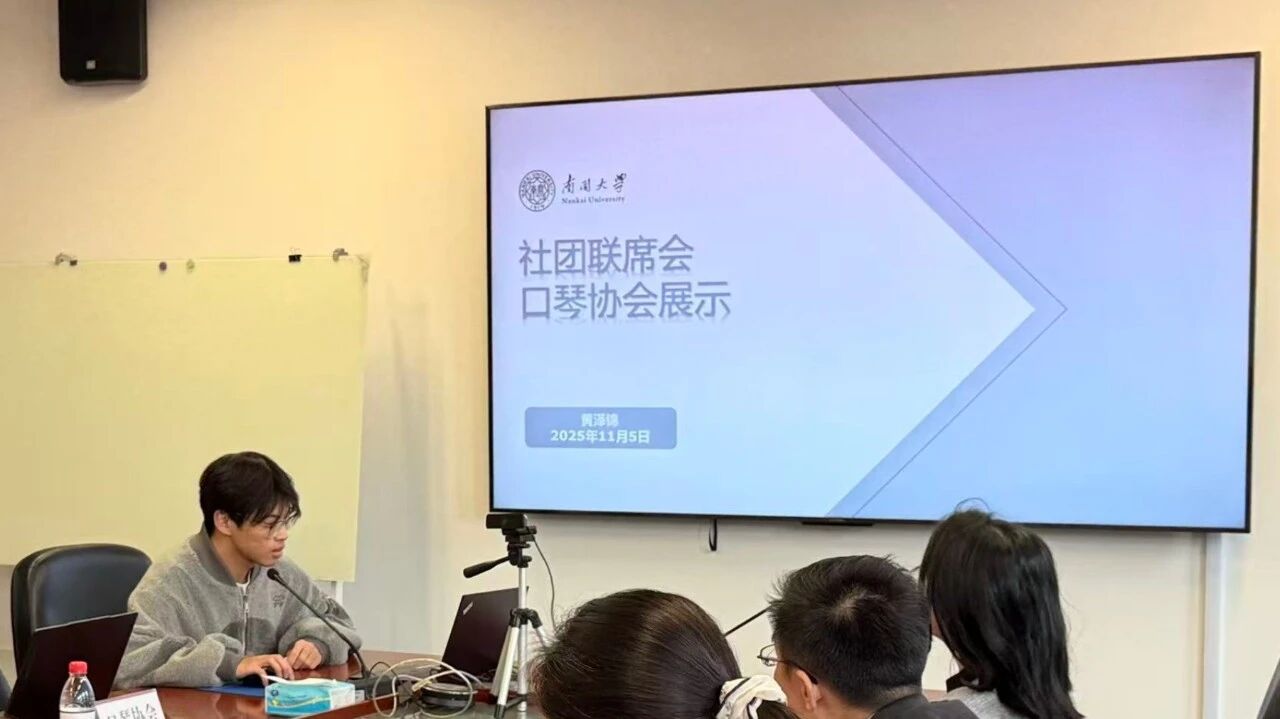 会议开始, 五个社团首先进行了学生社团展示与工作汇报。口琴协会、翔宇剧社、Fashion街舞社、学生模拟政协协会以及书画协会的负责人进行展示汇报, 围绕社团概况、纳新情况、活动开展状况与成就、现存问题及解决办法、未来规划和展望等方面作了详细汇报。