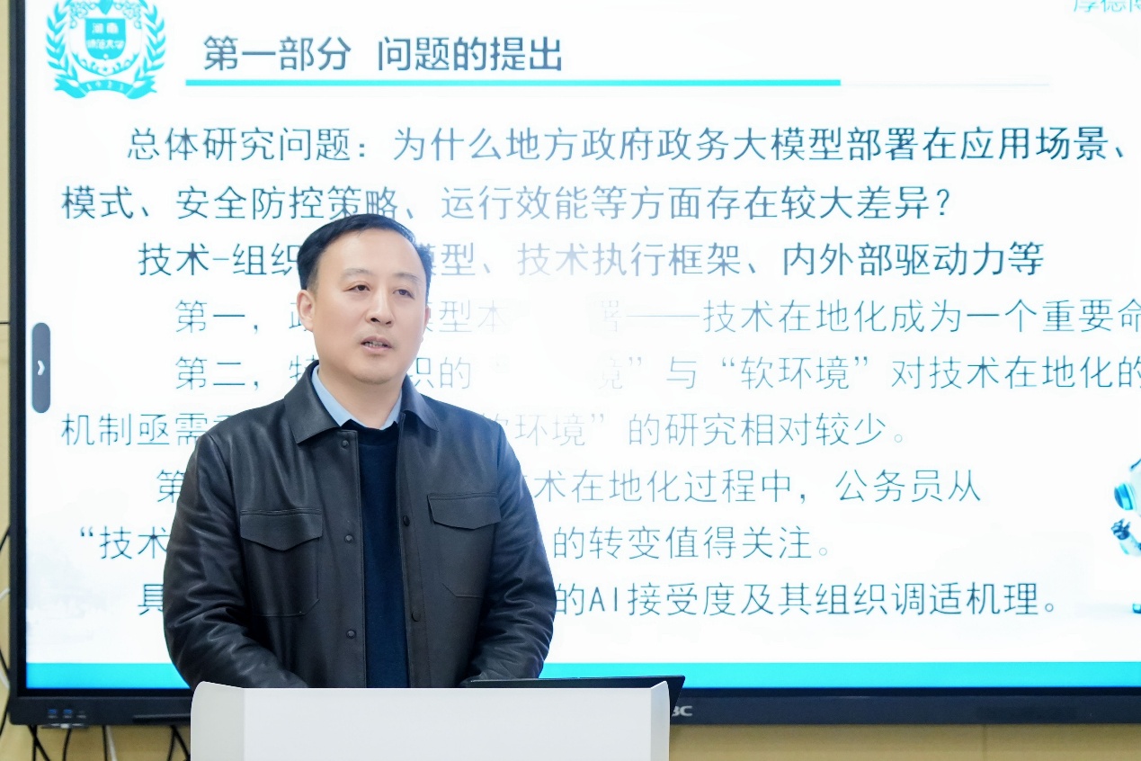 河南师范大学政治与公共管理学院副院长韩万渠教授发表了以《技术在地化的组织调适机制:基于基层公务员AI接受度的实证分析》为题的演讲,从个体和组织两个维度探讨了影响基层公务员人工智能接受度的因素。