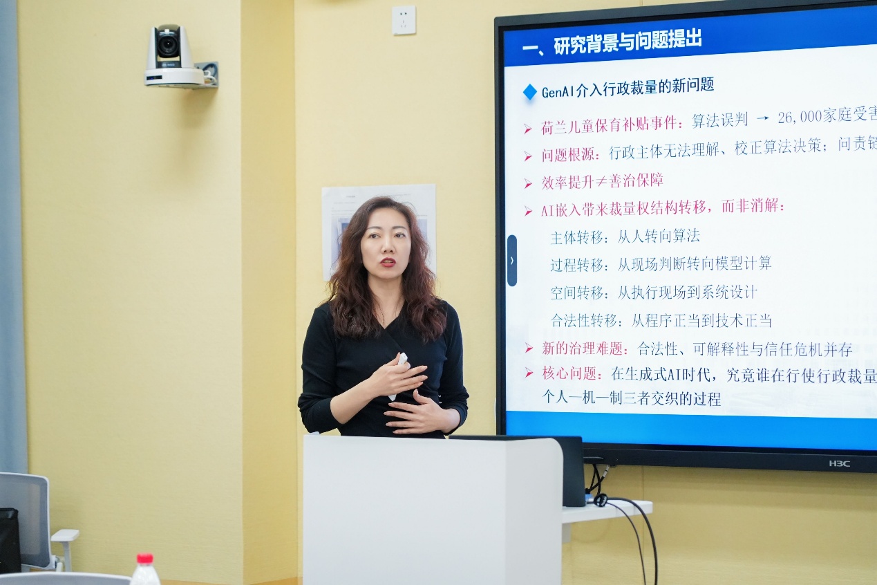 东北农业大学公共管理与法学院院长程镝教授发表了以《生成式人工智能下行政裁量机制的类型化与制度重塑》为题的演讲,从规则明确性和情境复杂性两个维度,分析了人工智能辅助下行政裁量的不同模式。