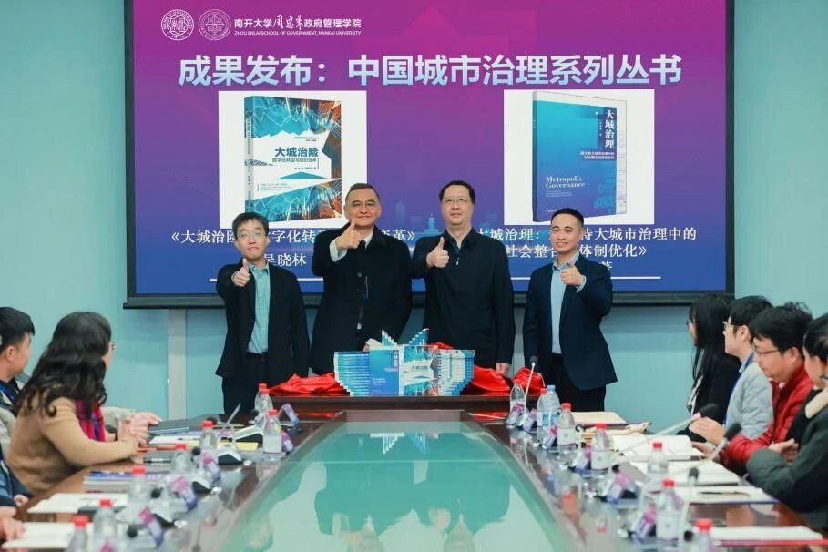 赵聚军教授共同为《大城治险:数字化转型与组织变革》和《大城治理:超大特大城市治理中的社会整合与体制优化》两部著作揭幕并合影留念。该系列丛书由搜同论坛